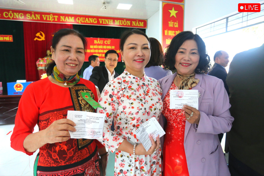 Không khí tại khu vực bỏ phiếu diễn ra nghiêm túc, phấn khởi, thể hiện tinh thần trách nhiệm và niềm tin của cử tri đối với sự kiện chính trị quan trọng của đất nước.