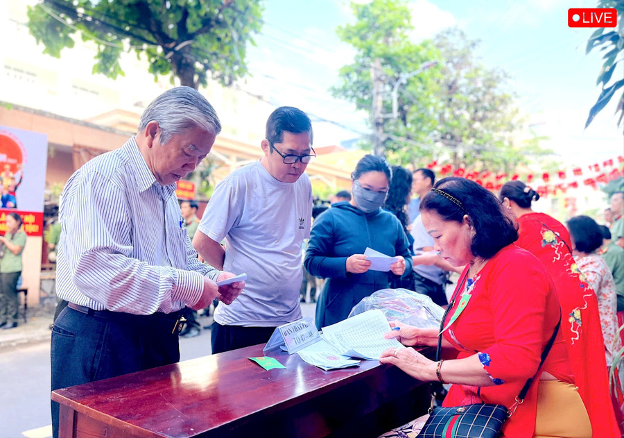 Cử tri nhận phiếu bầu tại khu vực bỏ phiếu số 41 - khu phố 41 (phường Quy Nhơn). Ảnh: Trần Dung