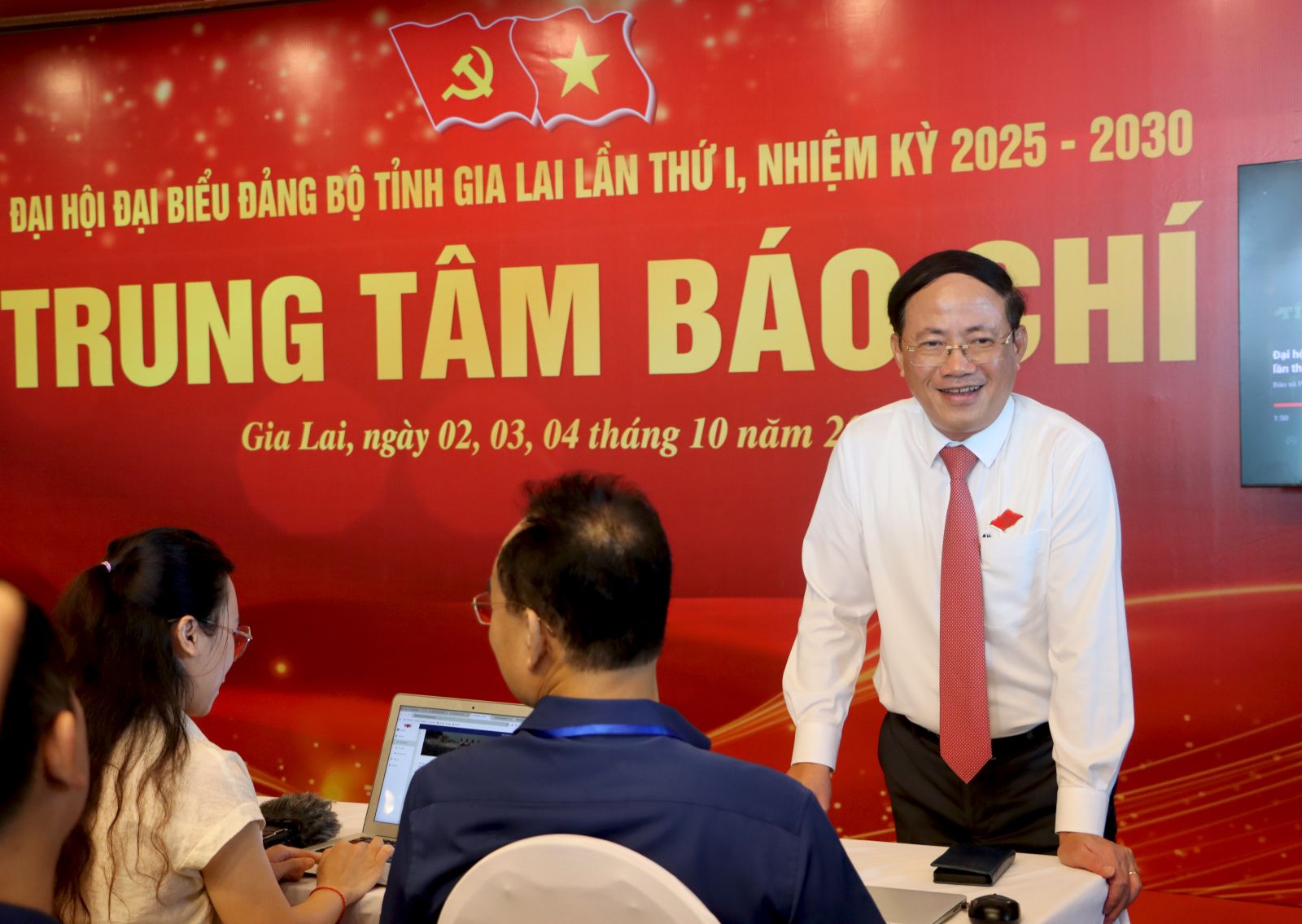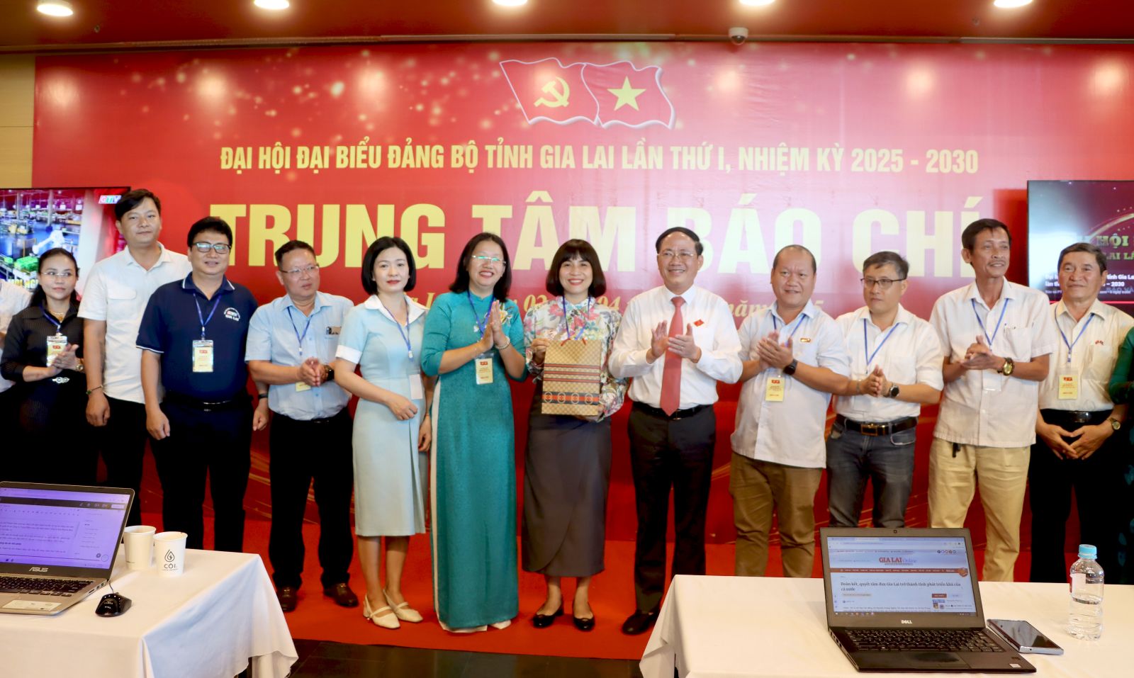 Phóng viên các cơ quan thông tấn báo chí tác nghiệp tại Đại hội đại biểu Đảng bộ tỉnh Gia Lai lần thứ I, nhiệm kỳ 2025-2030