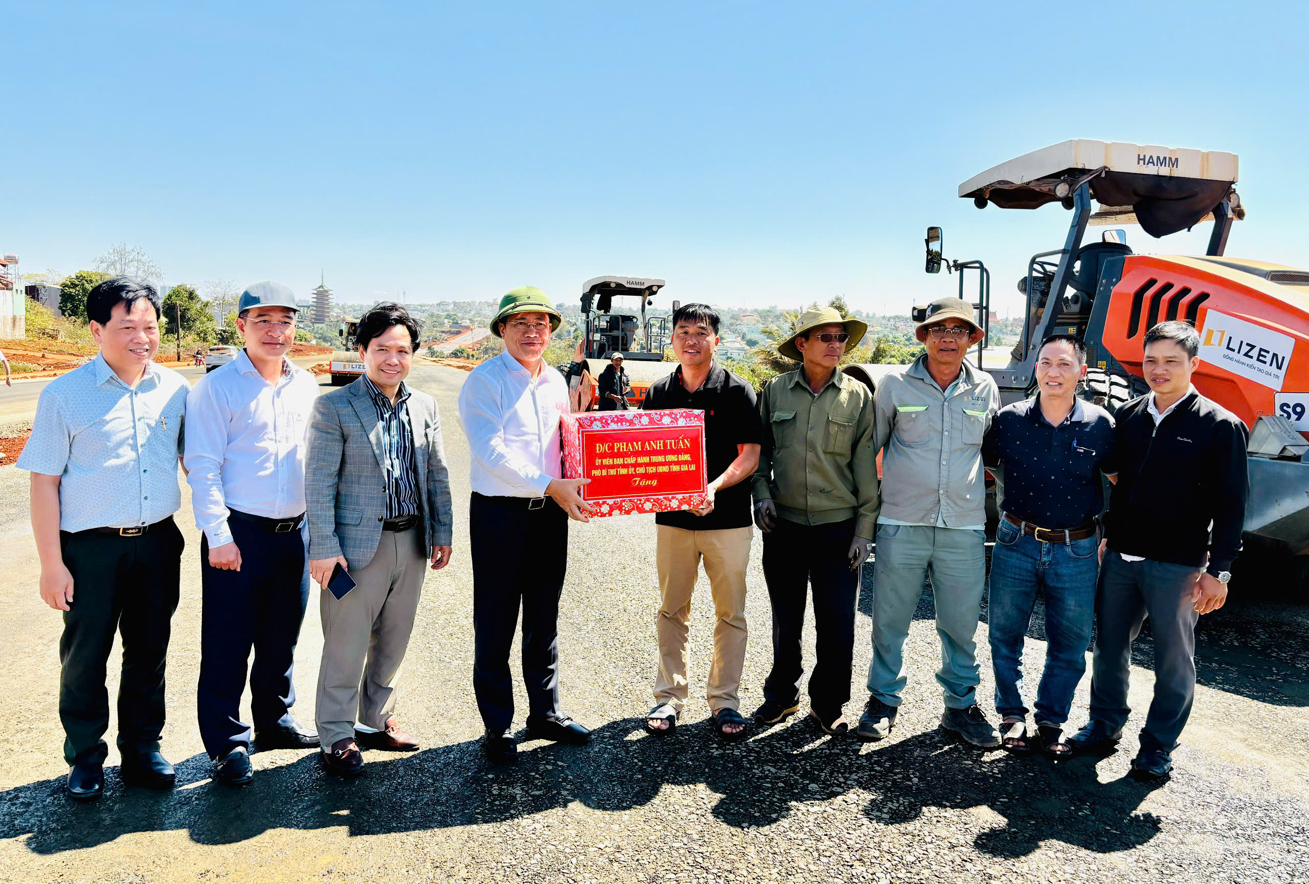 Nhân dịp này, Chủ tịch UBND tỉnh đã trực tiếp thăm hỏi, động viên và trao tặng quà Tết cho đội ngũ công nhân đang thi công và mong muốn đơn vị thi công đoàn kết, quyết tâm cao, nỗ lực hoàn thành các hạng mục theo đúng tiến độ trước Tết Nguyên đán để tạo diện mạo mới cho đô thị và thuận lợi giao thông cho người dân.