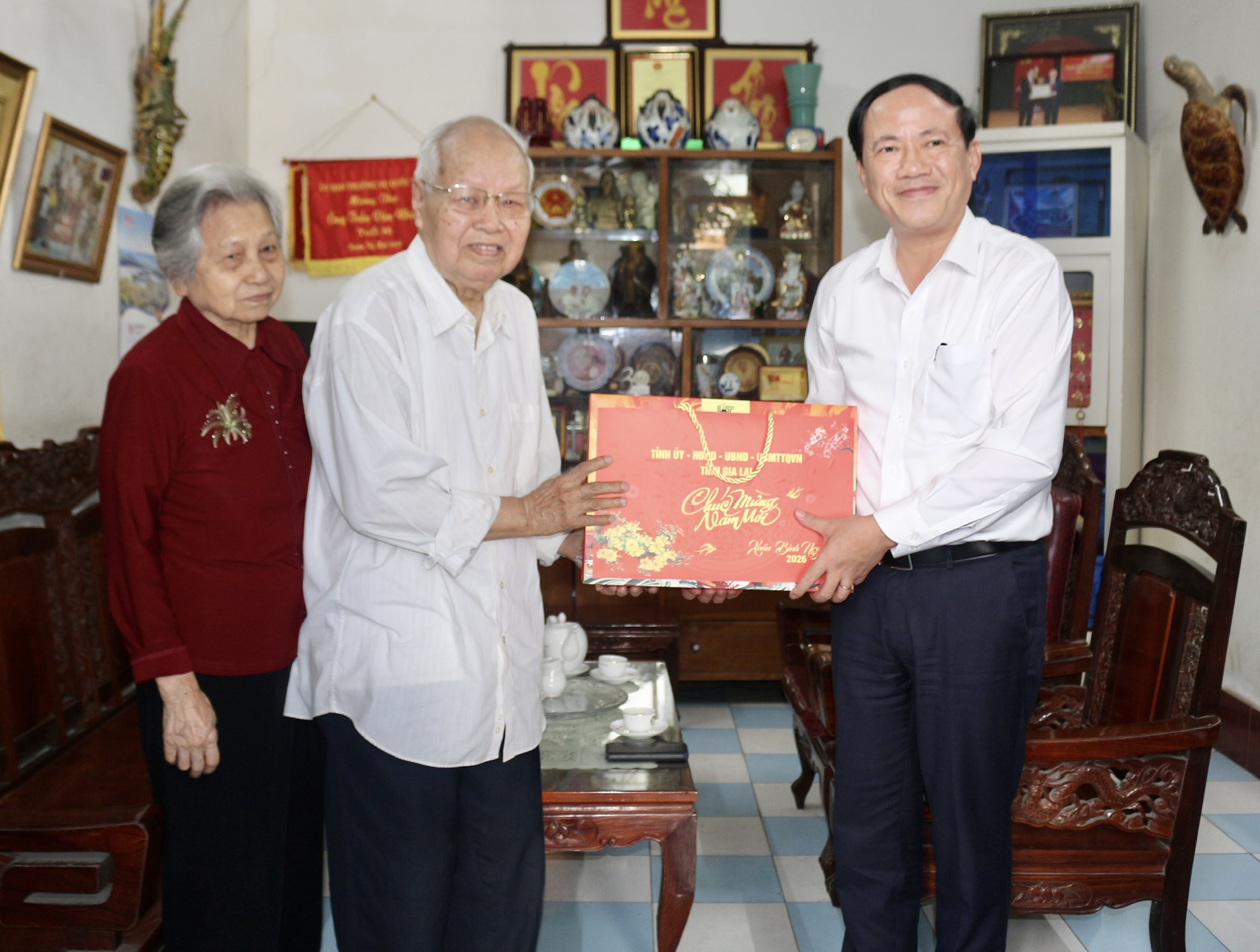 Chủ tịch Phạm Anh Tuấn tặng quà, chúc Tết đồng chí Lê Hữu Lộc - Nguyên Phó Bí thư Tỉnh ủy, Chủ tịch UBND tỉnh