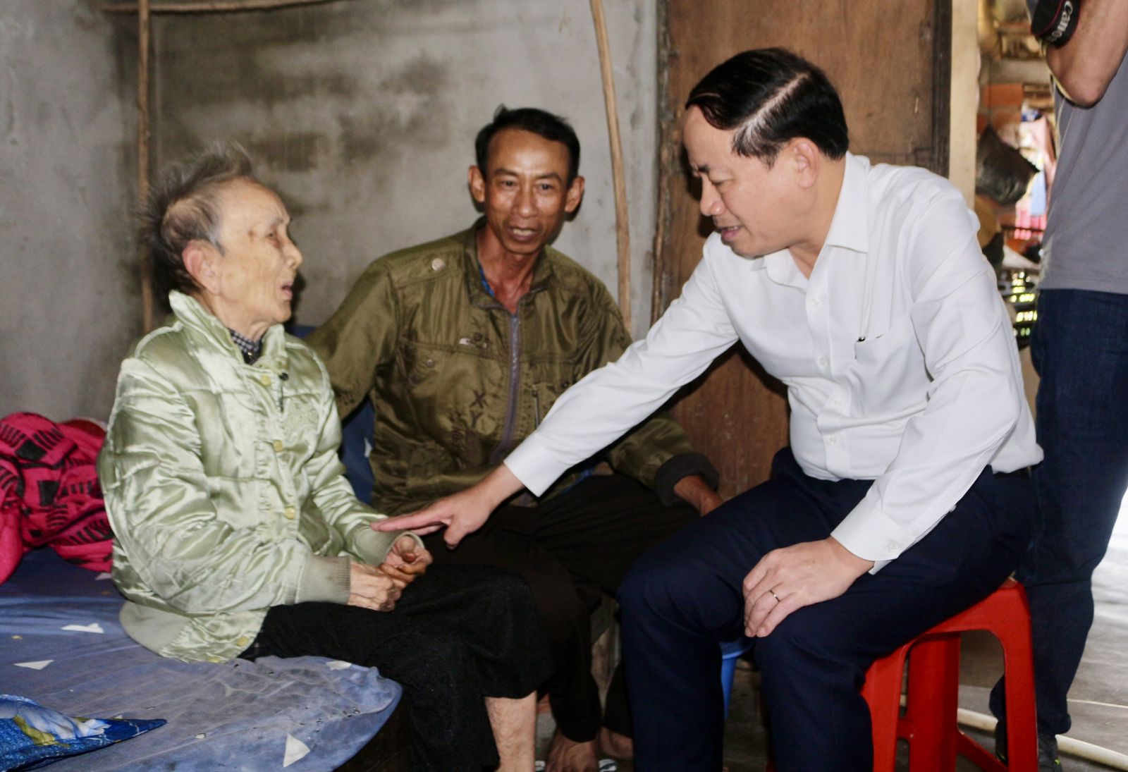 Đến thăm các gia đình chính sách, Chủ tịch UBND tỉnh Phạm Anh Tuấn đã ân cần thăm hỏi sức khỏe, đời sống, điều kiện sinh hoạt; đồng thời bày tỏ lòng biết ơn sâu sắc và sự trân trọng đối với những hy sinh, cống hiến to lớn của các đồng chí, các gia đình trong sự nghiệp kháng chiến bảo vệ Tổ quốc, đấu tranh giành độc lập, tự do cho dân tộc.