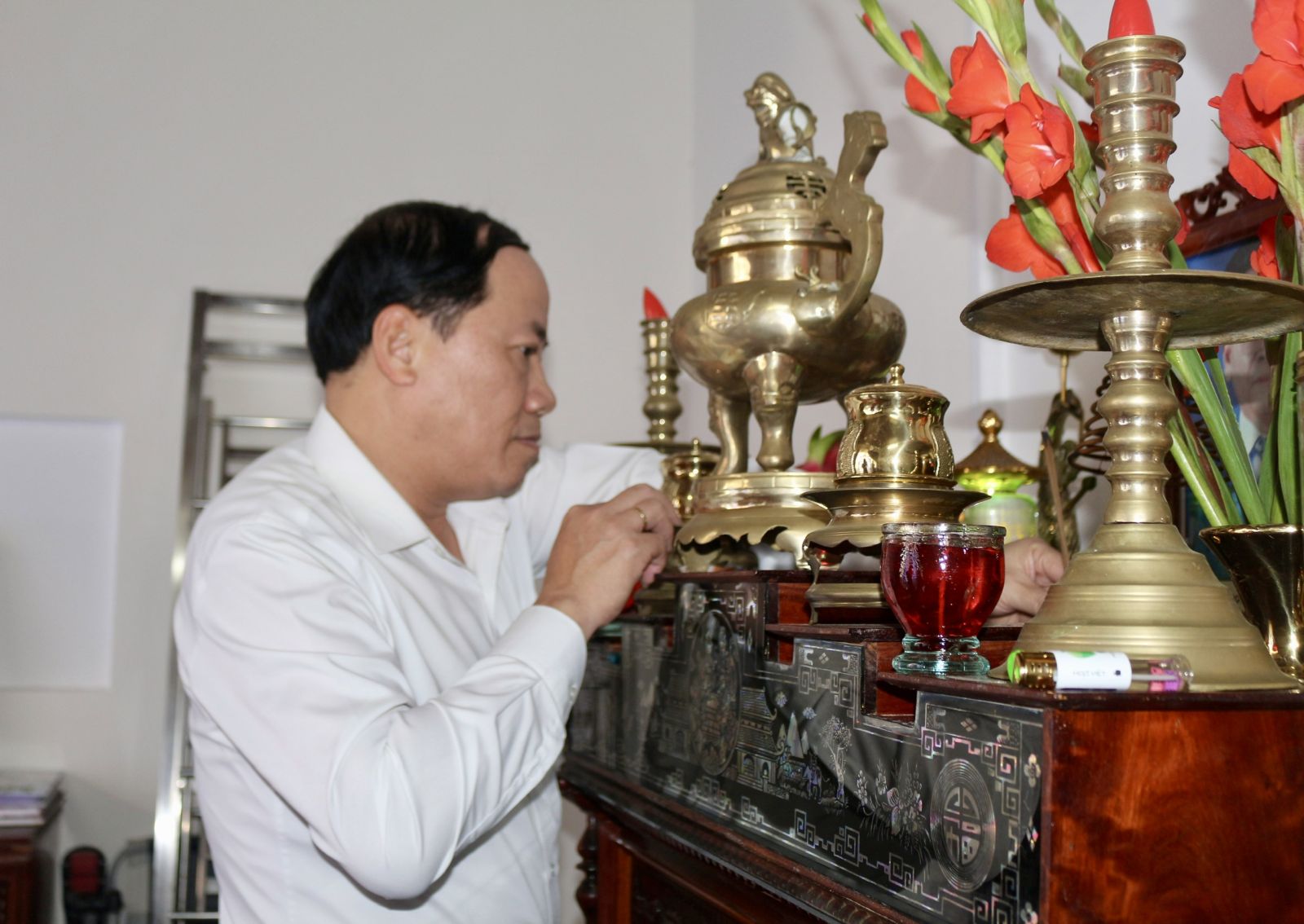 Chủ tịch Phạm Anh Tuấn dâng hương đồng chí Tô Đình Cơ - Nguyên Chủ tịch UBND tỉnh