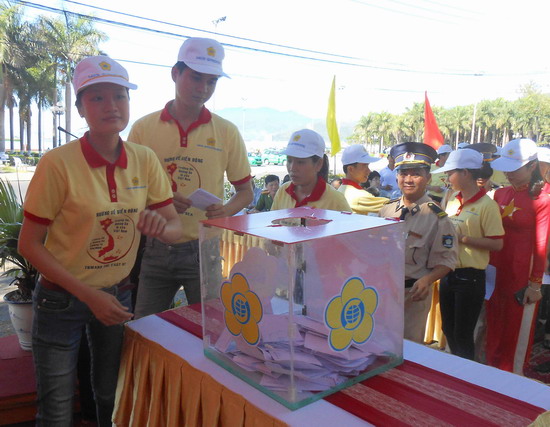 Cán bộ, nhân viên Công ty CP Du lịch Sài Gòn – Quy Nhơn quyên góp hưởng ứng Chương trình “Chung tay góp sức bảo vệ biển Đông”.