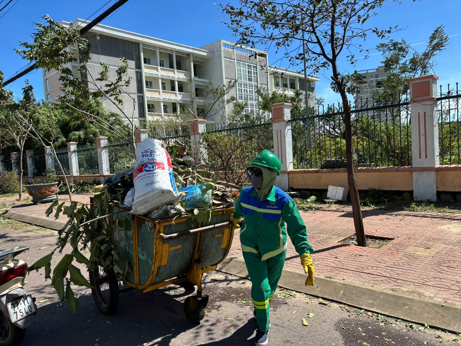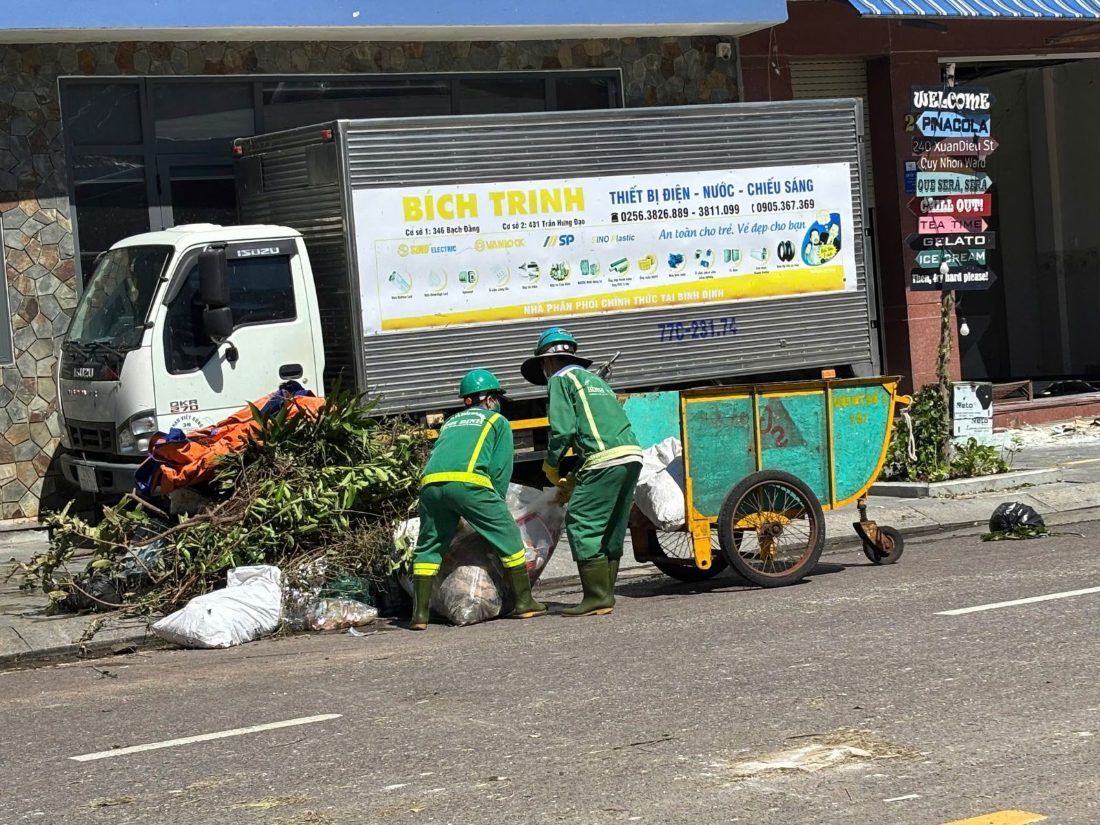 Khẩn trương thu dọn đường phố, khắc phục hậu quả sau bão số 13