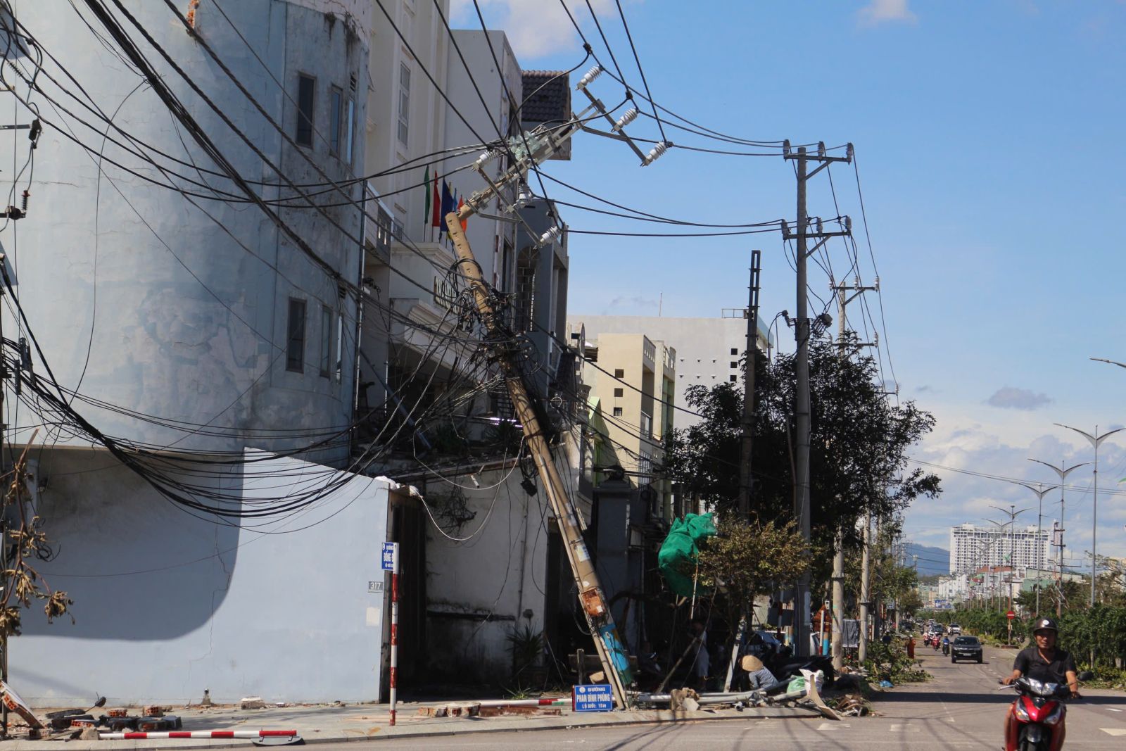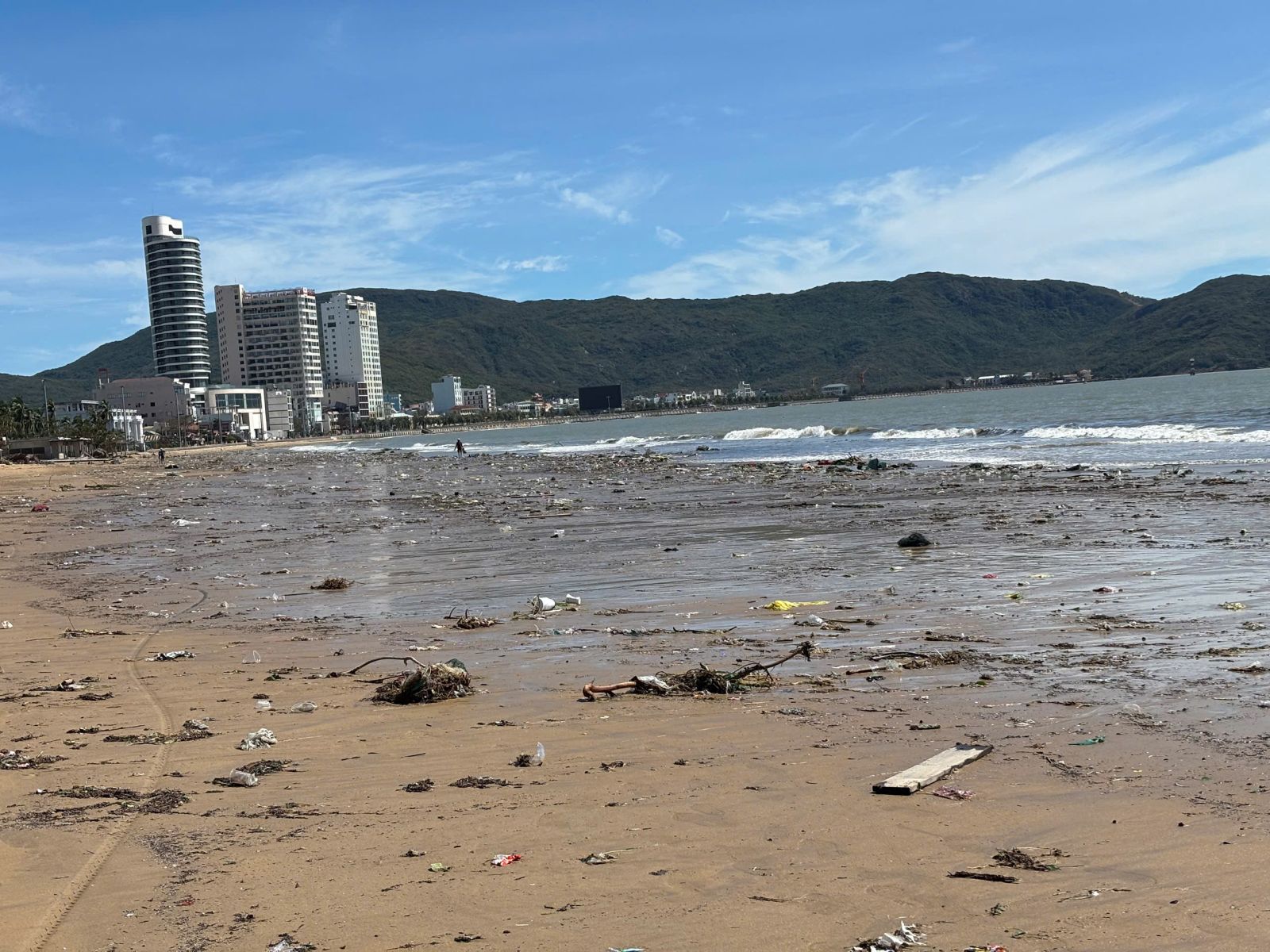 Bờ biển Quy Nhơn hoang tàn sau bão
