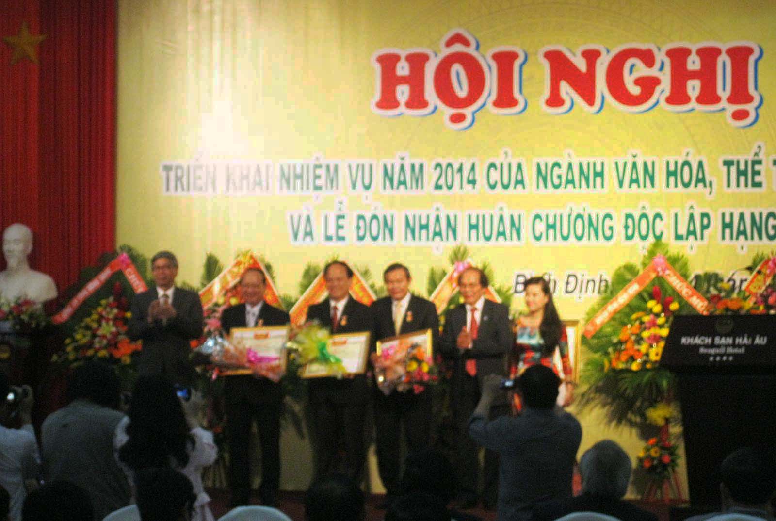 Tại Hội nghị, thừa ủy nhiệm Chủ tịch nước, đồng chí Nguyễn Văn Thiện đã trao Huân chương Độc lập hạng Ba cho Sở Văn hóa – Thể thao và Du lịch Bình Định; đồng chí Lê Hữu Lộc-Chủ tịch UBND tỉnh đã trao Huân chương Lao động hạng Ba cho 3 cá nhân; Bằng khen của Thủ tướng Chính phủ cho 5 cá nhân và nhiều phần thưởng cao quý khác cho các cá nhân và tập thể đã có thành tích xuất sắc trong năm qua./.