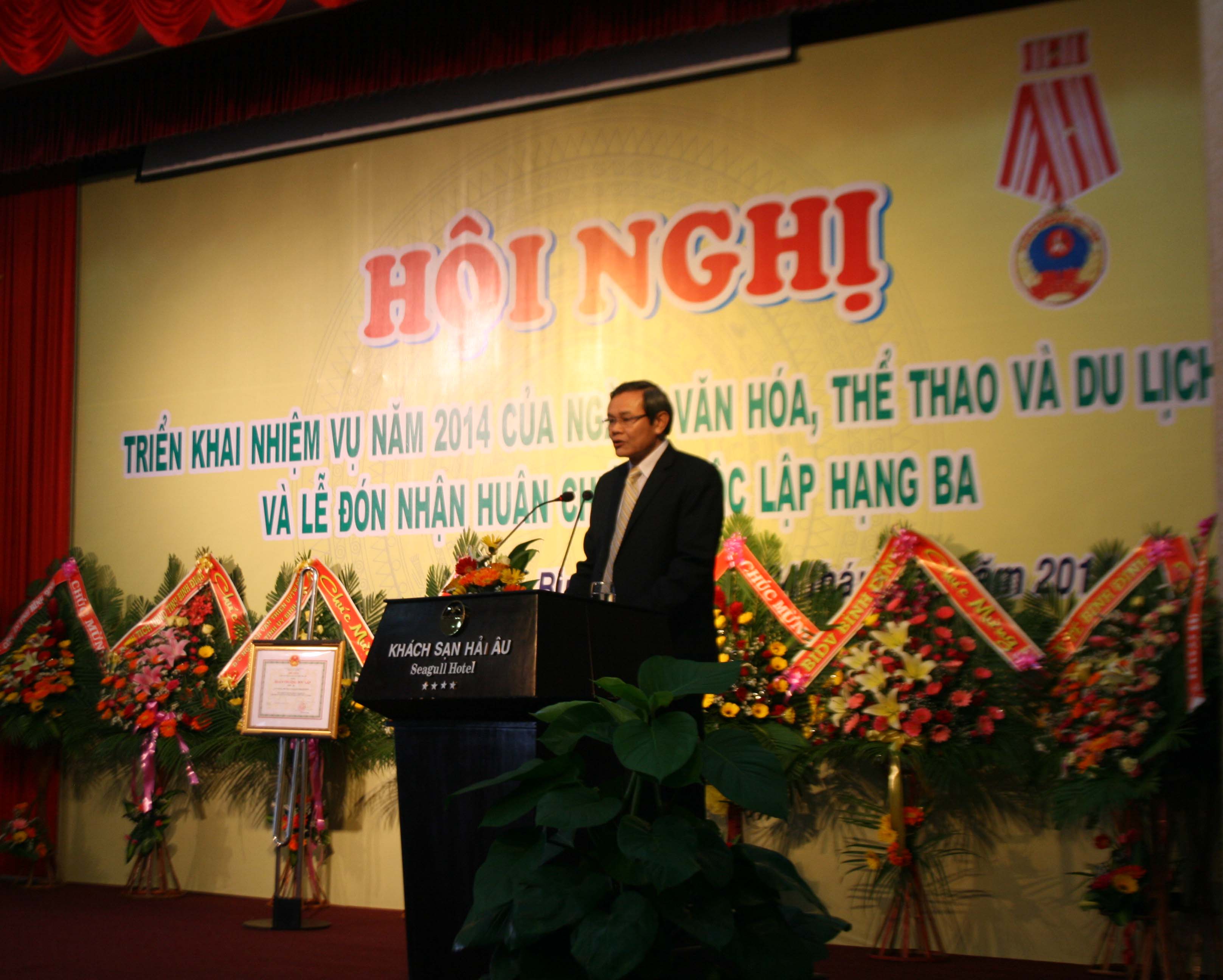 Phát biểu tại Hội nghị, Phó Chủ tịch UBND tỉnh Mai Thanh Thắng đã ghi nhận và biểu dương những thành tích của ngành đã đạt được trong năm qua, góp phần vào phát triển kinh tế - xã hội tỉnh nhà. Đồng thời đồng chí cũng lưu ý toàn ngành văn hóa, thể thao và du lịch trong thời gian tới triển khai thực hiện tốt các nhiệm vụ trọng tâm 2014; Nghị quyết số 16/NQ-CP; triển khai phòng chống bạo lực gia đình; mở rộng nâng cao TDTT quần chúng; tiếp tục phát triển và trùng tu các di tích lịch sử; xúc tiến đưa Bài chòi trình UNESCO công nhận là Di sản văn hóa phi vật thể của nhân loại; sớm khai thác các sản phẩm du lịch đặc thù của Bình Định; tăng cường công tác thông tin đưa Bình Định là điểm đến du lịch trong vùng duyên hải Miền Trung và Tây Nguyên;…