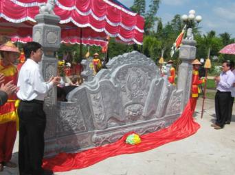 Phó Chủ tịch thường trực UBND tỉnh Hồ Quốc Dũng làm nghi thức khánh thành bức bình phong Đền thờ Đô đốc Bùi Thị Xuân.
