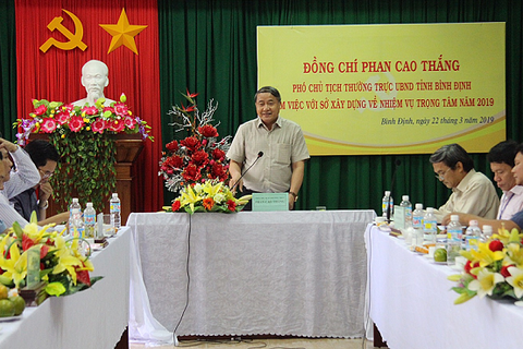 (binhdinh.gov.vn) - Đó là yêu cầu của Phó Chủ tịch Thường trực UBND tỉnh Phan Cao Thắng tại buổi làm việc về tình hình hoạt động năm 2018 và nhiệm vụ trọng tâm năm 2019 của ngành Xây dựng, tổ chức sáng nay (22/3). Tham dự buổi làm việc còn có đại diện lãnh đạo các sở, ...