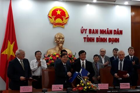 (binhdinh.gov.vn) - Sáng 26-11, tại Văn phòng UBND tỉnh Chủ tịch UBND tỉnh Hồ Quốc Dũng cũng lãnh đạo các sở, ngành của tỉnh đã có buổi tiếp và làm việc với lãnh đạo Trường Đại học Tôn Đức Thắng và Đoàn doanh nghiệp Châu Âu, đến Bình Định tìm hiểu cơ hội hợp tác đầu tư.