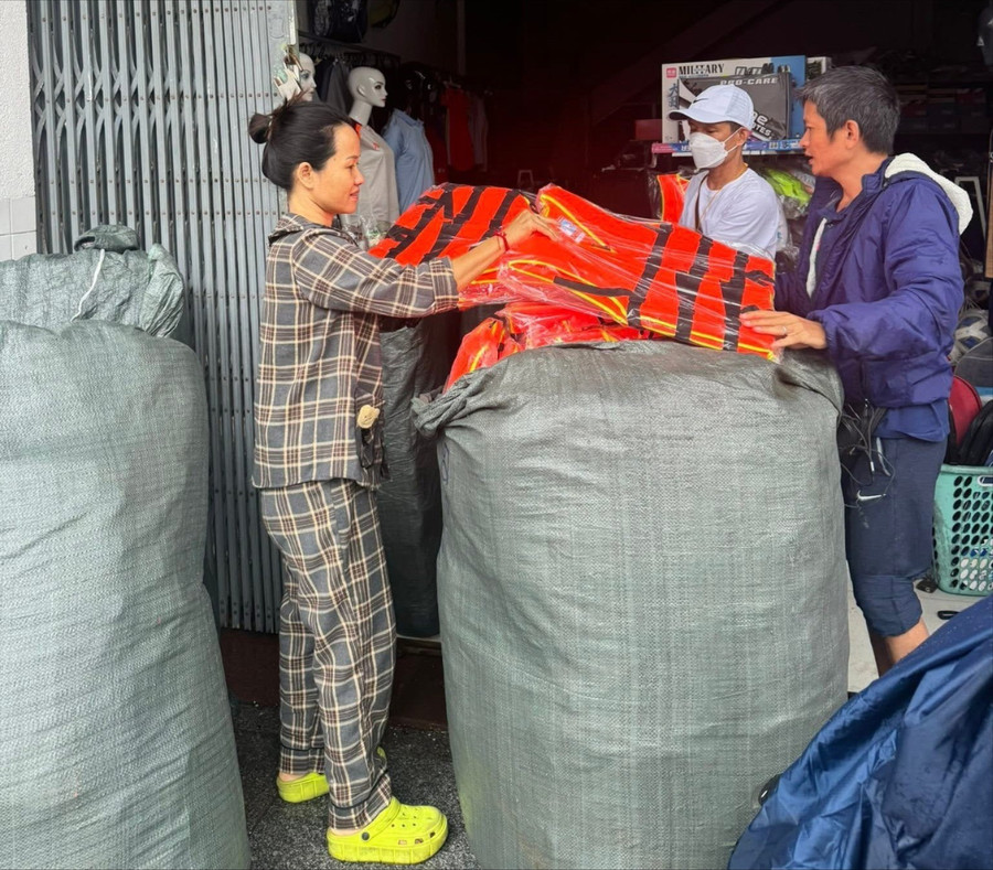 Bà Nguyễn Kim Liên (phường Quy Nhơn Nam) cũng kịp thời hỗ trợ 200 áo phao cho các đội cứu hộ tình nguyện đưa đón người dân đến nơi an toàn.