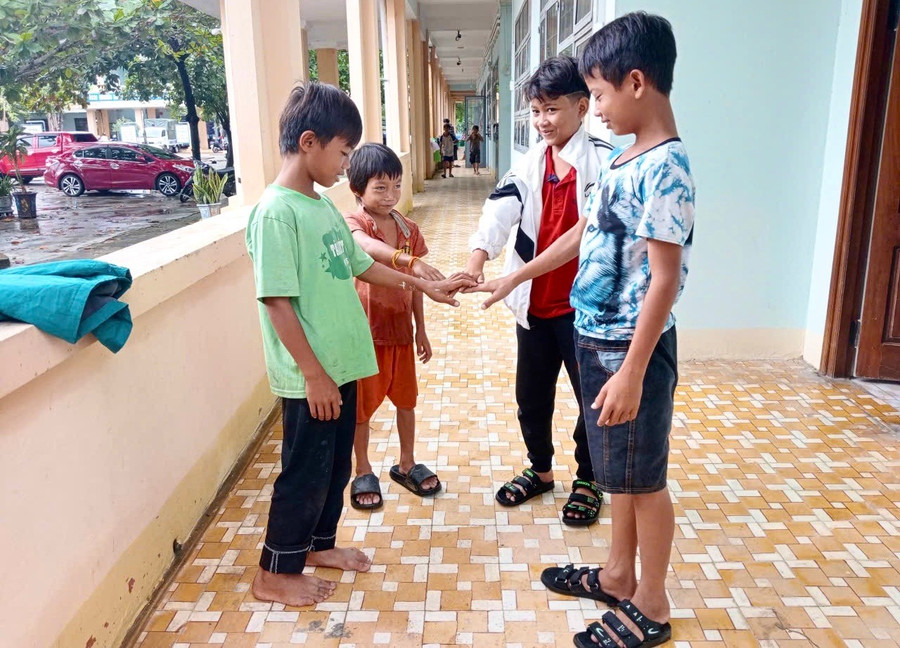 Trẻ em buôn Nu vui chơi ở điểm tránh ngập lụt tại Trường THCS Lê Quý Đôn. Ảnh: Văn Chi